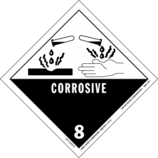 ![]() | 8 | Corrosive Substance that can dissolve living tissue or severely corrode certain metals. Includes: acids, such as sulfuric acid and hydrochloric acid, and alkalis, such as potassium hydroxide and sodium hydroxide. |