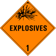 ![]() | 1 | Explosive Includes TNT, ammunition, rockets, fireworks and other explosive substances listed in the Australian Explosives Code. Contains 6 divisions to classify different blast levels. |