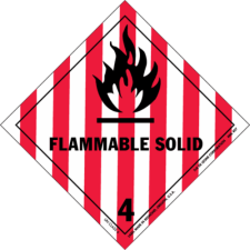 ![]() | 4.1 | Flammable solid Solid substance that is easily ignited and readily combustible. Includes nitrocellulose, magnesium, firelighters and matches. |