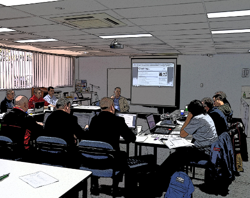 The whole group works through the form, from top to bottom, with Sue filling in a sample day's production results on her screened version. This lets everyone see the form being completed with all necessary information and the correct use of abbreviations and technical terms.